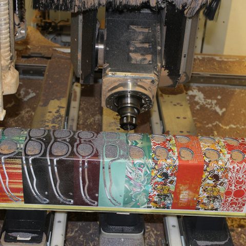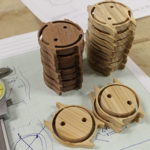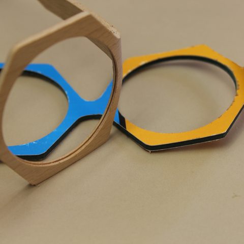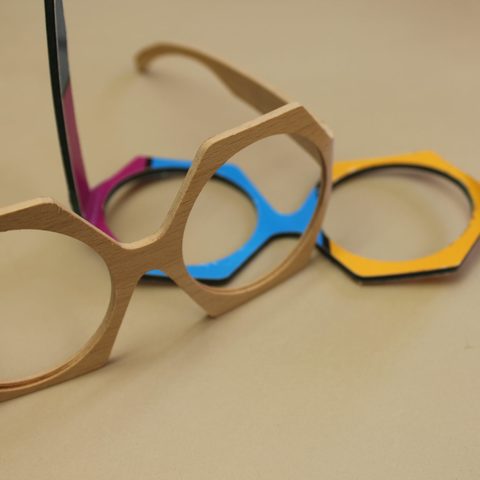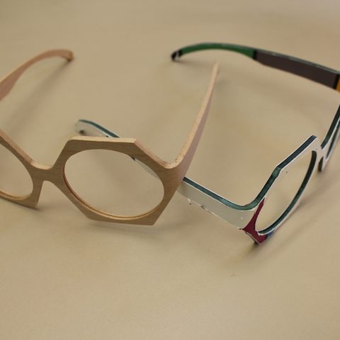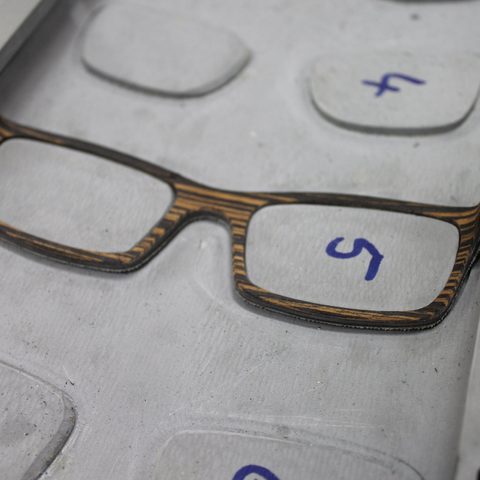 Glasses made of wood or printed paper are eye-catching and make you a fashion pioneer with an ecological conscience. The moulded U-profiles are milled from a single piece so that the front and side parts are unique in terms of grain and structure. In production, this means that the milled components must not be mixed up.